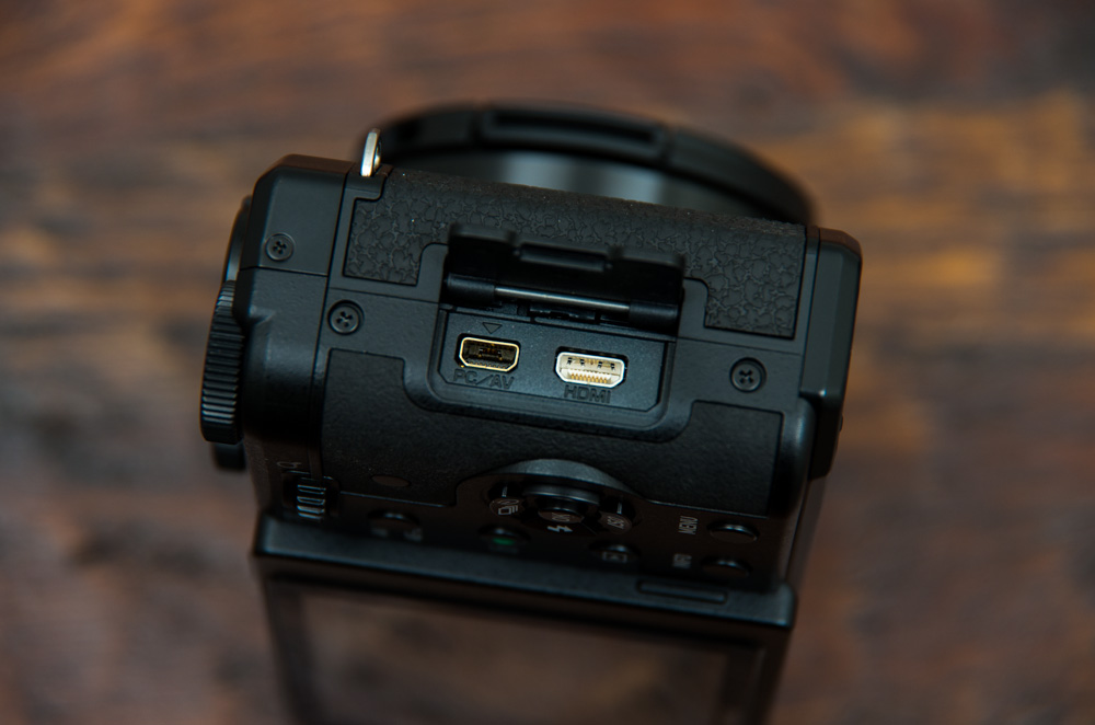 On the other side of the camera is the camera’s proprietary USB port and micro-HDMI port which will allow you to connect it to your TV.