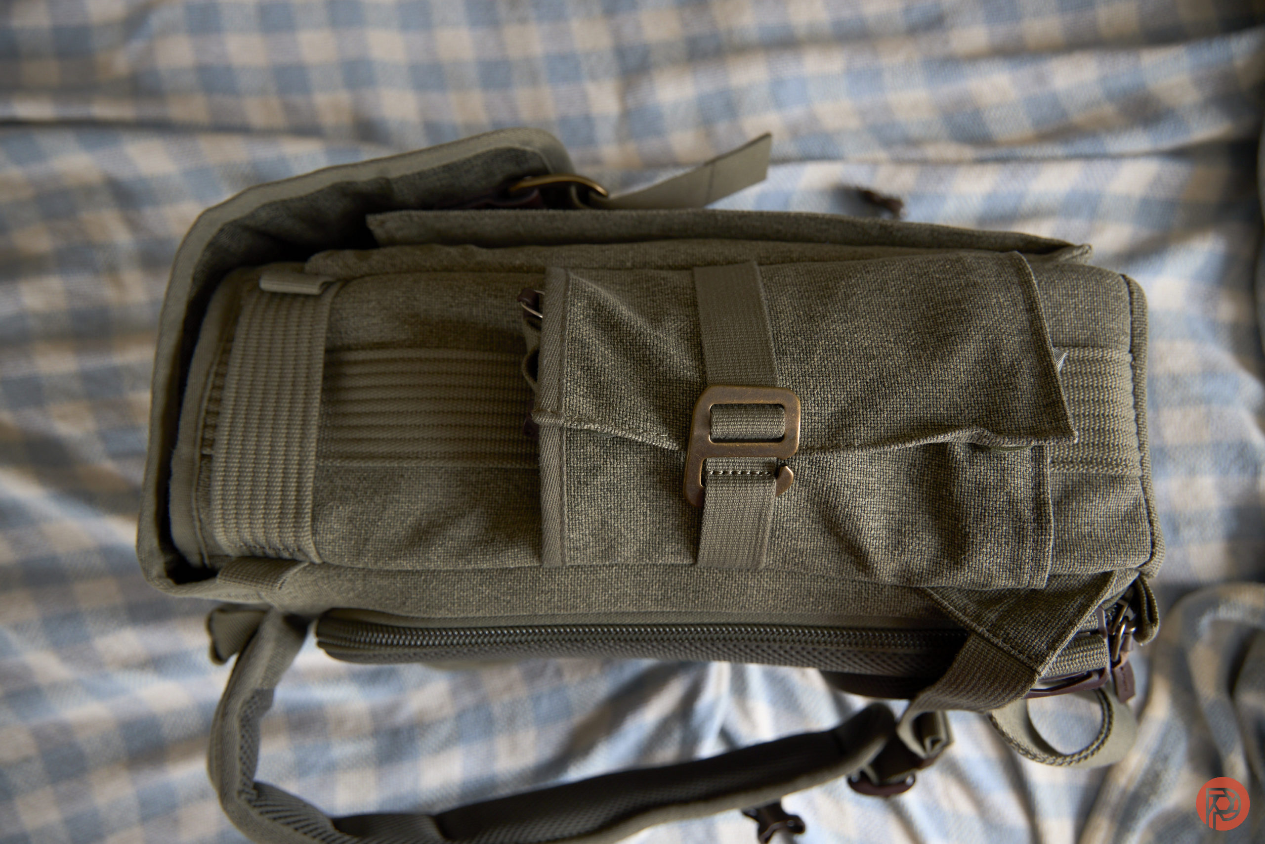 Here’s the top flap of the Think Tank Retrospective backpack. It can be opened to get to the contents inside; or at least to start to get to them.